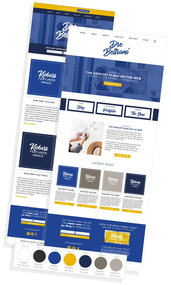 To help you do that, here’s a color palette mock-up template pack, which will allow you to input the colors from your palette and see them live on a homepage and a blog page mock-up.